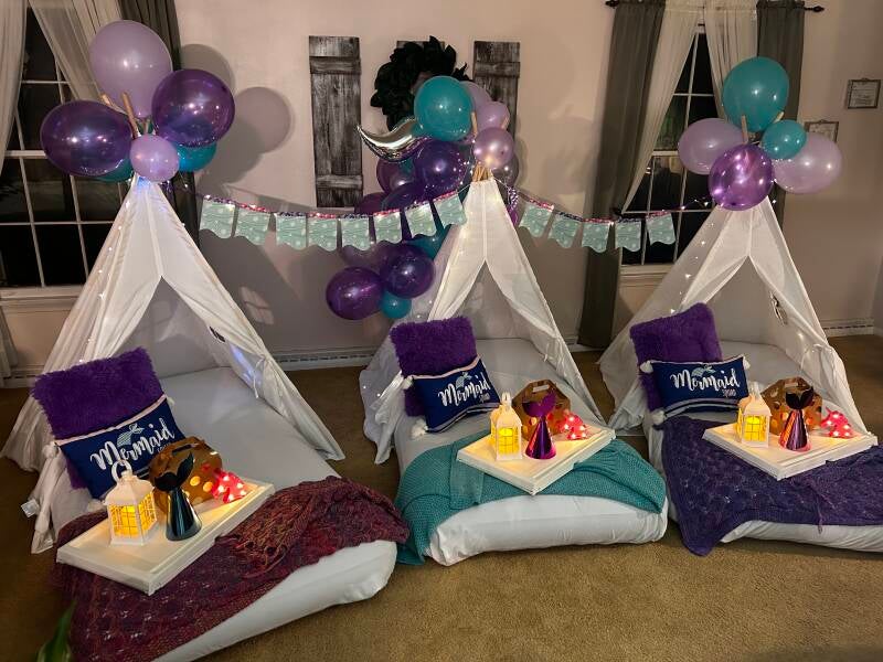 At slumbertentparties.com, we specialize in creating enchanting and unforgettable sleepover parties right here in Saginaw, Michigan. We pride ourselves on transforming ordinary nights into extraordinary magical experiences that will be the talk of your friend group long after the last pillow fight.